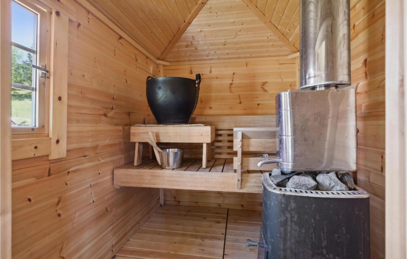 Two-Bedroom Holiday Home. The sauna and fireplace are the standout features of this holiday home. Boasting a private entrance, this holiday home comes with 1 living room, 2 separate bedrooms and 1 bathroom with a shower. In the well-equipped kitchen, guests will find a stovetop, a refrigerator, a dishwasher and kitchenware. The holiday home features a TV, a tea and coffee maker, a dining area, heating as well as sea views. The unit has 1 bed and 2 futons.